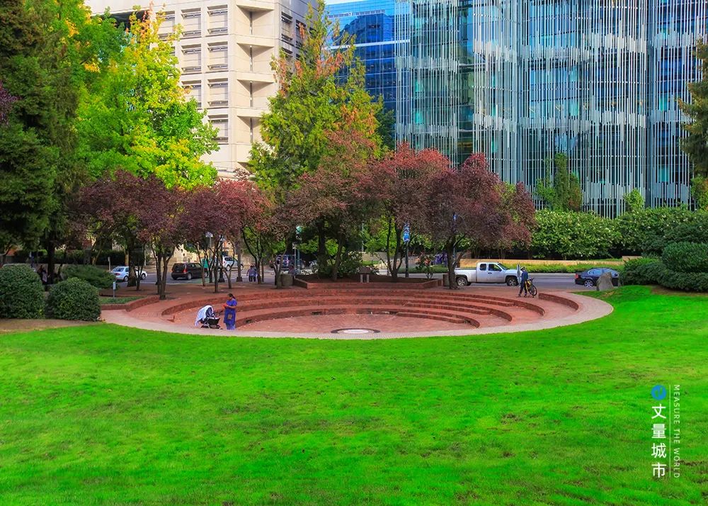 這一線性綠化帶,不僅便捷、易達,而且更具形象展示力,盡頭的波特蘭州立大學(xué)及兩側(cè) 的波特蘭藝術(shù)博物館、俄勒岡歷史學(xué)會等各種博物館和文物古跡,構(gòu)成了波特蘭秩序感和展示性極強的波特蘭文化中心。