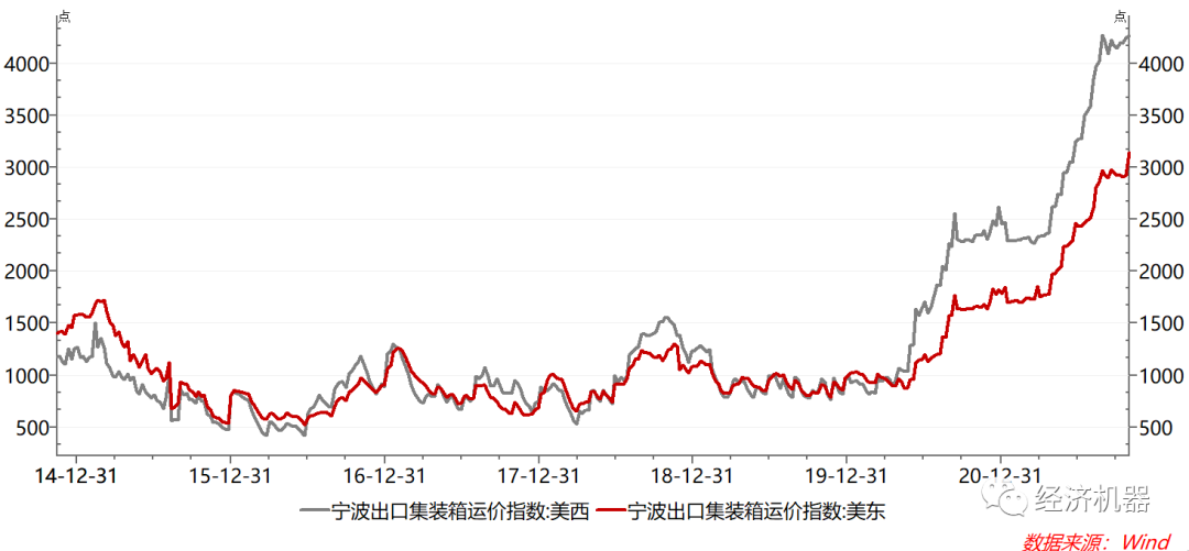 圖9、寧波集裝箱運(yùn)價指數(shù):再創(chuàng)新高