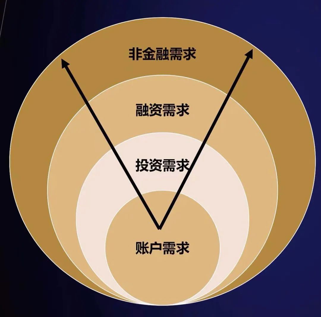 而在最基礎的賬戶層面,就是以銀行賬戶為基礎打通C端客戶,實現(xiàn)集團內客戶統(tǒng)一管理,我們可以想象未來會形成一個客戶一個資配視圖,多個產品、多個服務人員、乃至多個集團內公司綜合服務,而整套服務是一體化的,彼此續(xù)接斷點、彼此協(xié)同共享——