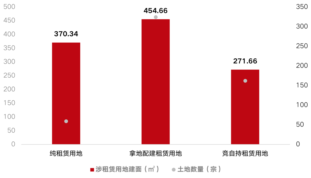目前來看,主要的拿地方式分三種,純租賃用地、自持租賃用地供應和配建租賃用地,其中以配建租賃用地為主,共324宗,約454.66平方米。隨著競自持租賃住房逐漸退出歷史舞臺,未來集中供地租賃用地也將以拿地配建租賃用地和純租賃用地兩種供應方式為主。