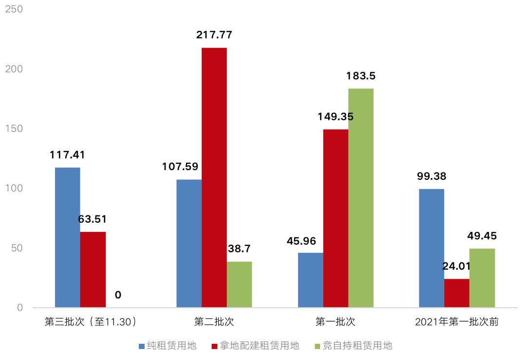 分批次來看,主要以第一和第二批次為,其中第一批次競自持租賃用地占比最高,第二批次拿地建配租賃用地最多。