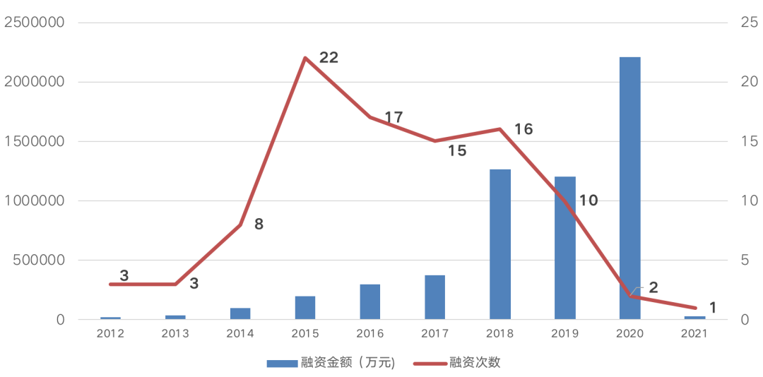圖:2012-2021年住房租賃企業股權融資事件數量及金融變化趨勢