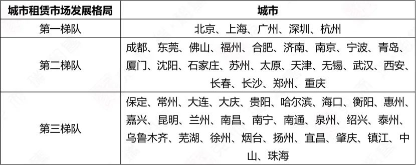 第一梯隊核心城市和第二梯隊城市代表了中國租賃住房發展的城市布局。其余城市租賃市場長久發展的空間不大。