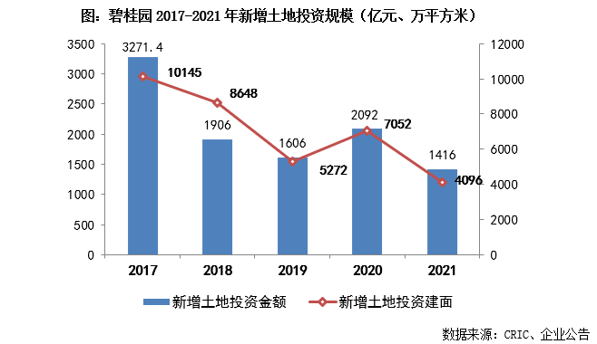 2021年,碧桂園實現營業收入5230.6億元,同比增長13%;毛利潤927.8億元、凈利潤409.8億元;歸母凈利潤268億元、核心凈利潤269.3億元。毛利規模的下降主要是受到2017、2018年部分高成本獲取的低毛利項目進入交付和2021下半年市場下行行業降價促銷影響,對結算利潤率水平有一定影響。2021年,碧桂園實現毛利率17.7%、凈利率7.8%、核心凈利率5.1%,較去年同期均有不同程度的降低。管理層預計,目前短期內還處于市場出清的過程中,中長期毛利率水平有改善空間。