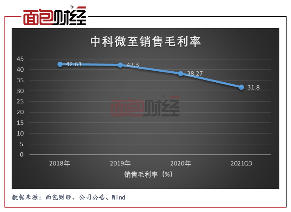 圖7:2018年至2021Q3中科微至銷(xiāo)售毛利率