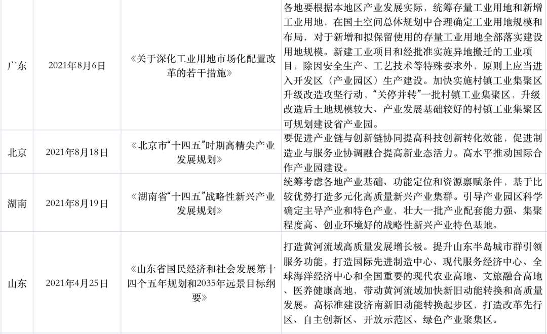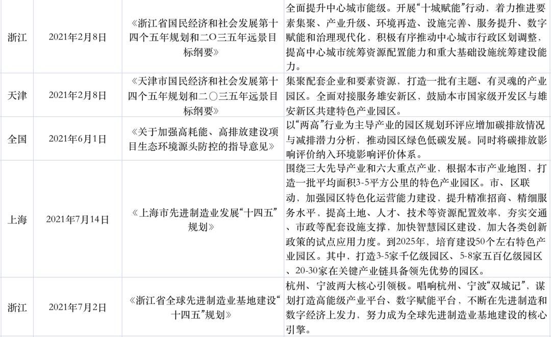 2021年以來部分產業地產相關政策