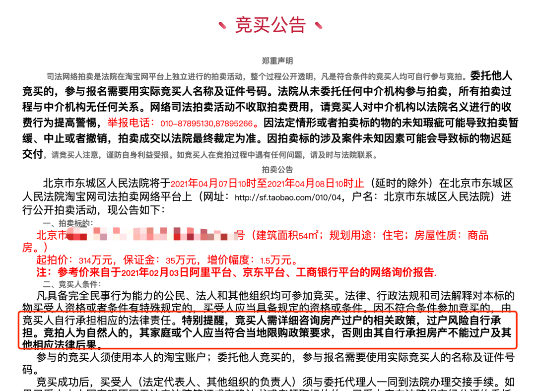 另外關于稅費以及上述新聞中相關物業欠費的繳納,法院公告中不會顯示具體的金額,這個時候需要買受人提前準備,做好盡調,計算好購房成本及出價預算再進行參拍。