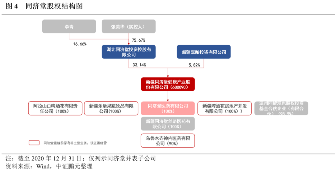 同濟堂醫藥原為湖北同濟堂投資有限公司(簡稱 “同濟堂控股”)控股的子公司,2016年,同濟堂控股將同濟堂置入新疆啤酒花股份有限公司,實現借殼上市。新疆啤酒花股份有限公司,為新疆較早的上市公司之一,原主營業務啤酒釀造銷售、果蔬飲品加工等,與同濟堂控股進行資產重組后更名為新疆同濟堂健康產業股份有限公司(簡稱“同濟堂”),出售持有的烏蘇啤酒全部股權(占該公司股權的50%)給嘉士伯,轉而持有同濟堂100%的股份,變更為醫藥流通企業。目前,同濟堂的主要資產、負債集中于同濟堂醫藥,盈利和經營活動凈現金流亦主要來源于同濟堂醫藥,占比超過90%,其面臨的外部融資環境等亦高度一致,因此同濟堂的償債能力與同濟堂醫藥的償債能力變動趨勢亦基本一致,主體級別于2021年4月同步下調至CC。