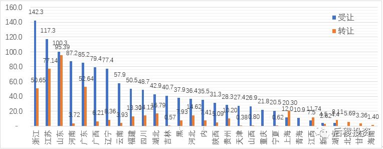 長城資產的分省受讓數據較為均衡,基本能與當地銀行業不良債權存量市場體量匹配,其中排在前五的浙江、江蘇、山東、河南、廣東共計占總受讓金額的43.1%;而在出讓端,山東、江蘇、廣東、浙江四省的規模遠大于其他地區,貢獻了總出讓的67.15%份額,充分體現了這四個地區二級市場的流動性優勢。