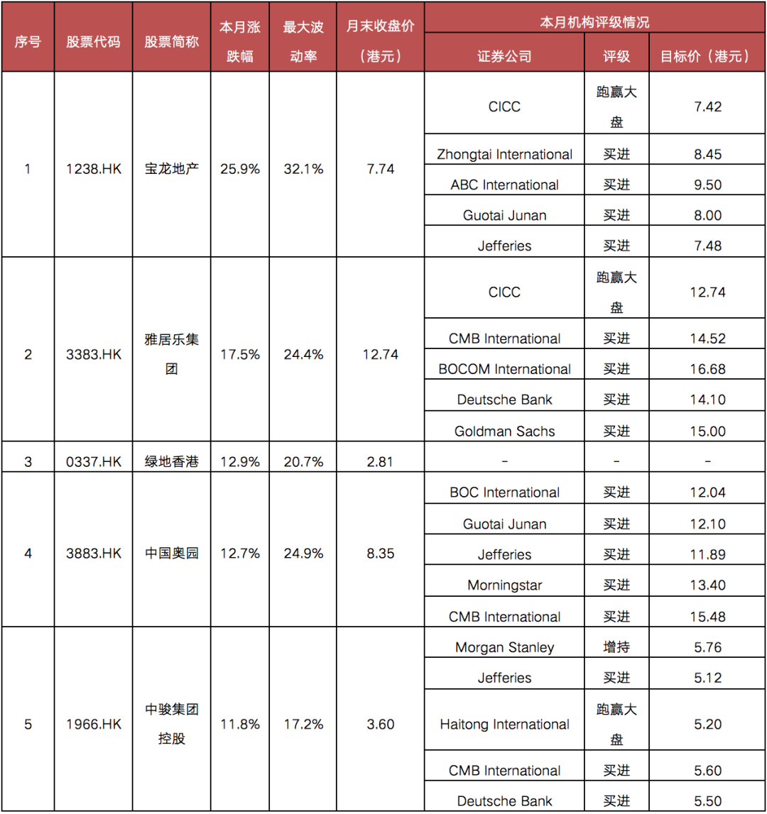 表:3月克而瑞內房股領先指數成分股漲幅TOP5