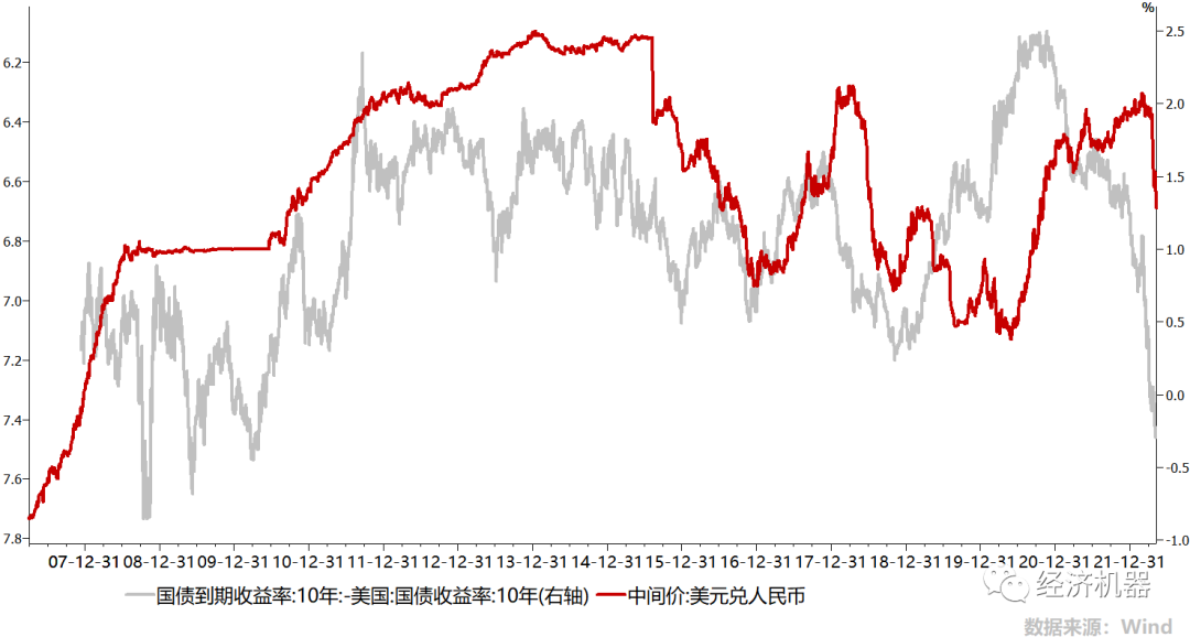 當(dāng)前的情況與2018年的情景有些類似。2018年上半年美國(guó)迅速加息,中美利差也迅速收窄,但人民幣匯率仍在升值,直到中美貿(mào)易戰(zhàn)開打,匯率迅速回落,持續(xù)貶值達(dá)7個(gè)月;當(dāng)前,也是美國(guó)迅速加息,中美利差持續(xù)下滑,但2022年3月前人民幣仍相對(duì)強(qiáng)勢(shì),直到上海疫情封城,人民幣匯率迅速貶值。