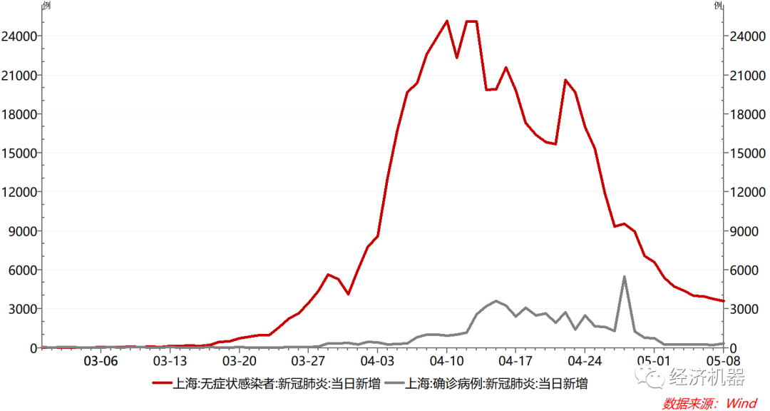 圖5、上海確診病例和無(wú)癥狀感染者:當(dāng)日新增