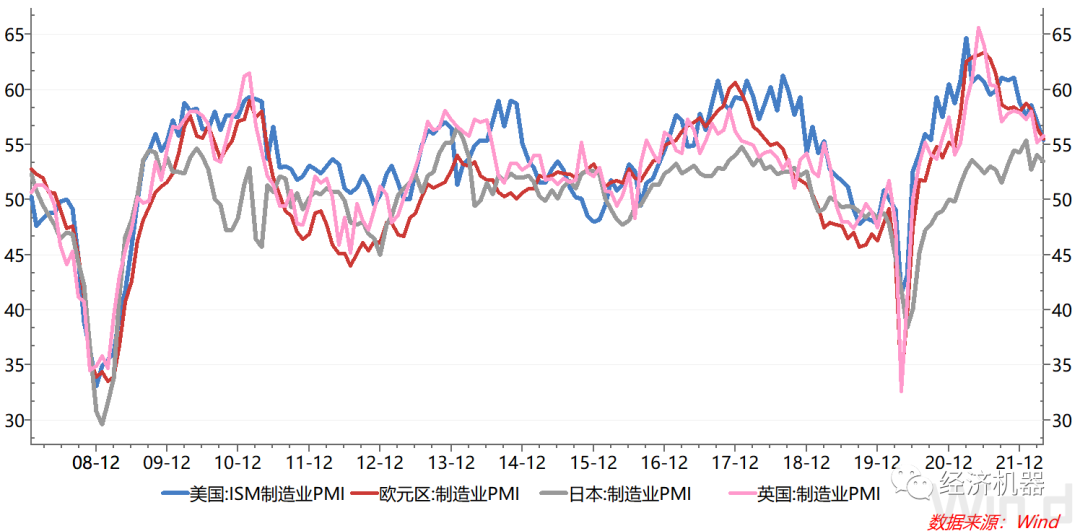 圖7、發(fā)達(dá)經(jīng)濟(jì)體制造業(yè)PMI