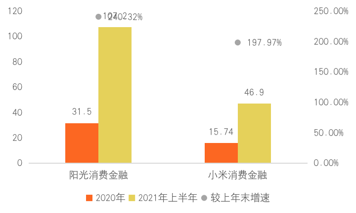 圖 1:2021年上半年陽(yáng)光消費(fèi)金融與小米消費(fèi)金融