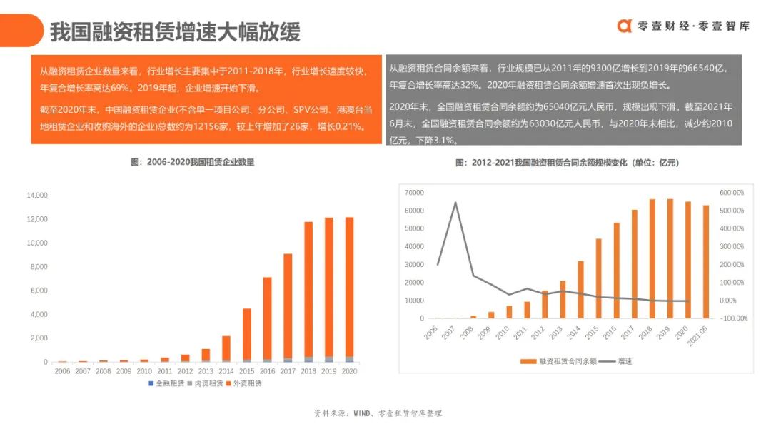截至2021年6月末,全國(guó)融資租賃合同余額約為63030億元人民幣,與2020年末相比,減少約2010億元,下降3.1%。