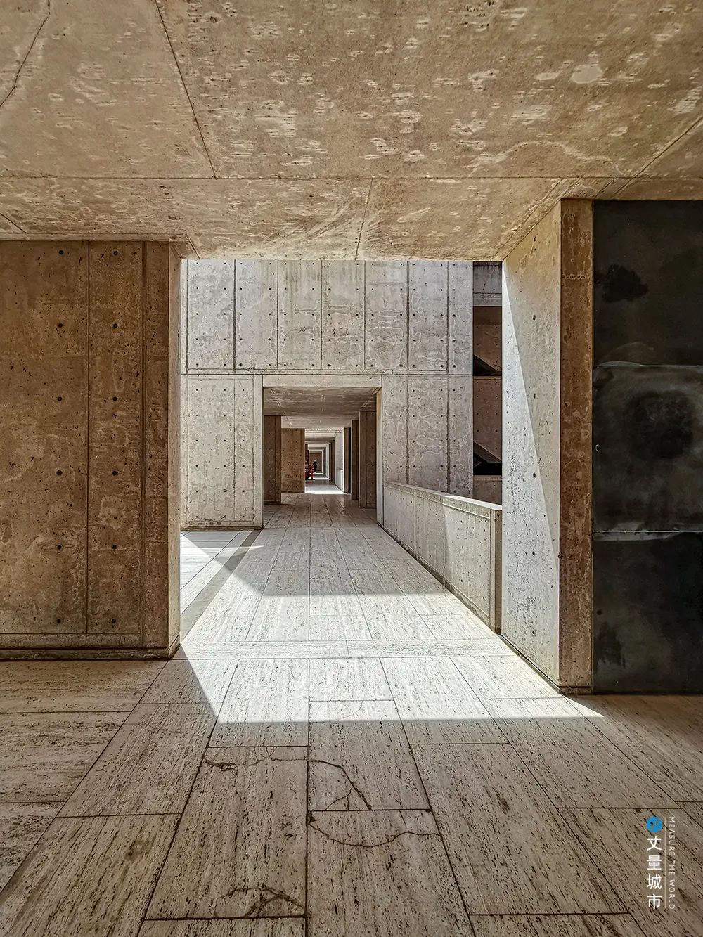 在修道院的教堂中,往往通過高聳的穹頂和炫目的玫瑰花窗彰顯出令人忘我的神圣感,由此讓修士們更加虔誠修行;在薩爾克生物研究所中庭——無疑也塑造出「精神原點(diǎn)」的最佳效果。超越時(shí)間的空間賦予每一個(gè)人駐足思索的力量……