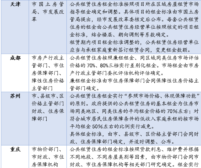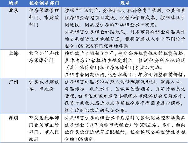 下表列舉了幾個熱點城市租金規定情況: