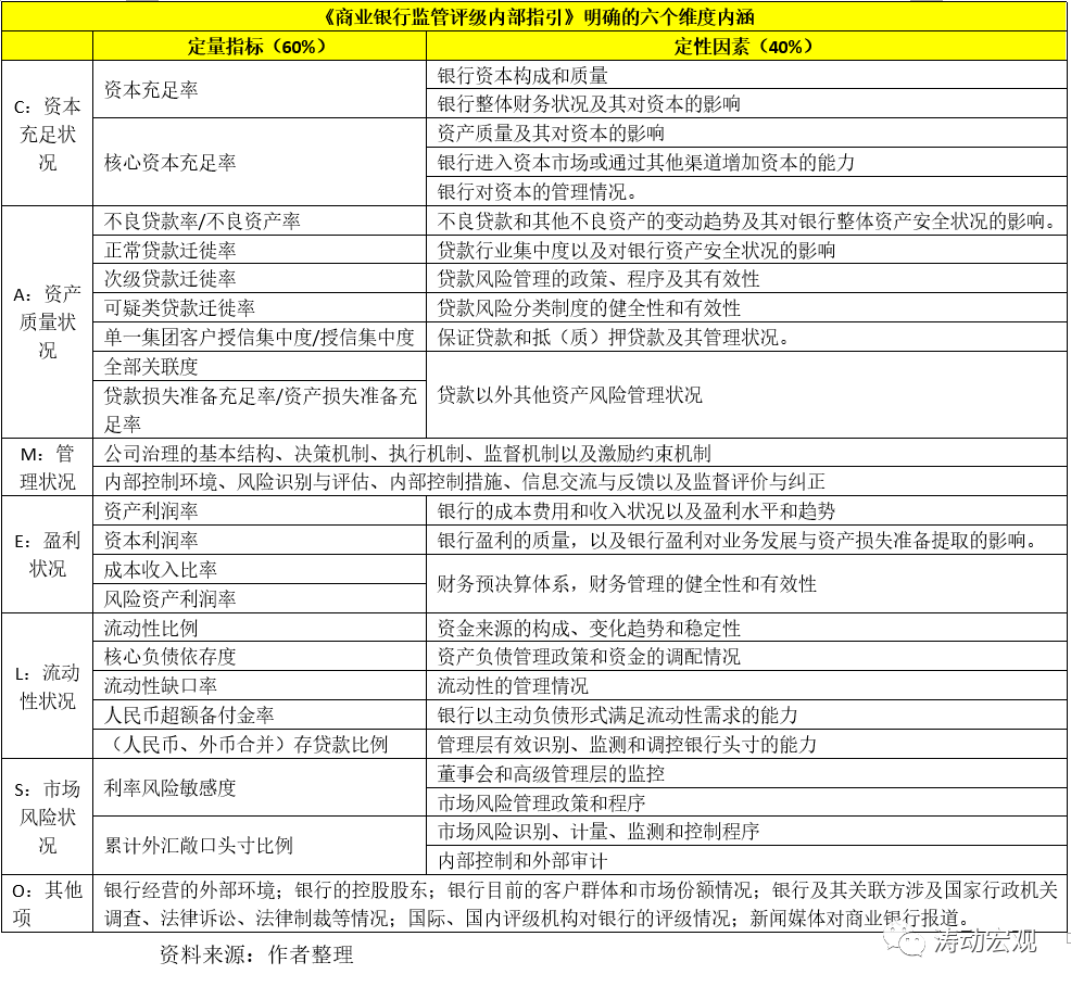 1、監管評級:依據《監管評級辦法》和《監管評級評分操作表》