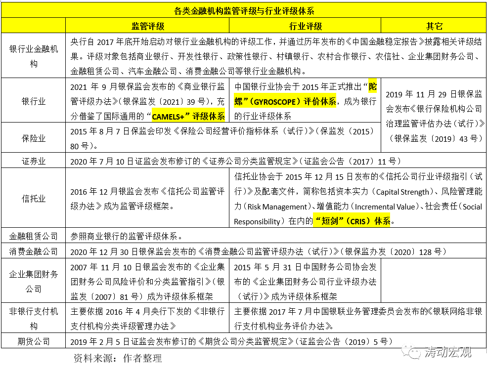 (三)一般情況下,監管部門負責相應的監管評級審定工作,行業協會則主要負責行業評級(結果通常會對外公開)。當然二者有時也會共用一套體系。