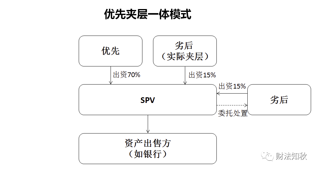 第一種:優先和夾層成立基金,劣后以保證金形式付給基金,基金去收購債權;劣后一旦違約,可能先直接被擦除掉出資,再虧損,就會虧到夾層本金;