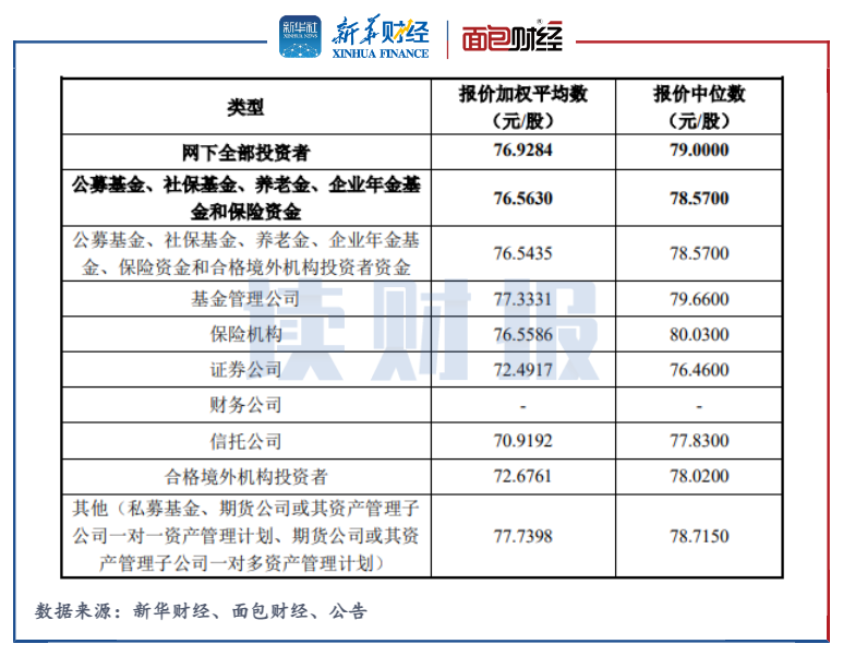 其中,廣發基金報價122元/股,是申購成功的投資者中報價最高的機構,共獲配79775股。其申報價相應的市盈率達到91.59倍,遠高于同期中證醫藥制造業平均市盈率35.4倍。