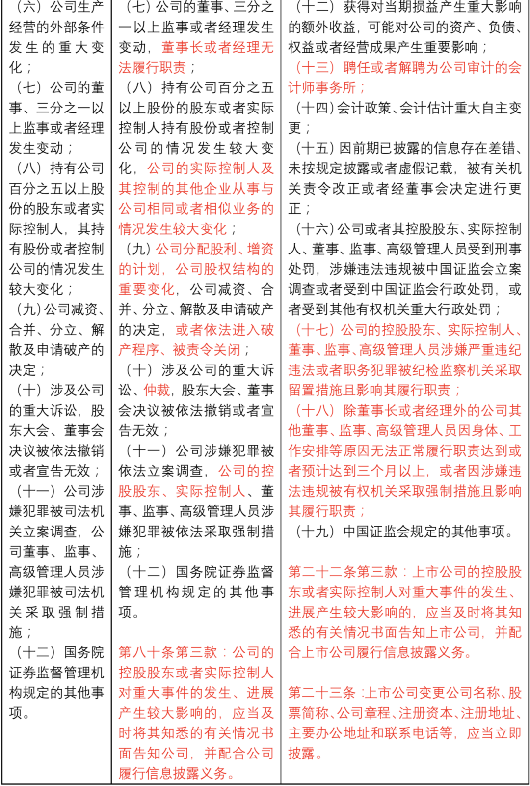 2)新法對(duì)“重大事件”披露制度進(jìn)行了哪些補(bǔ)充和完善?