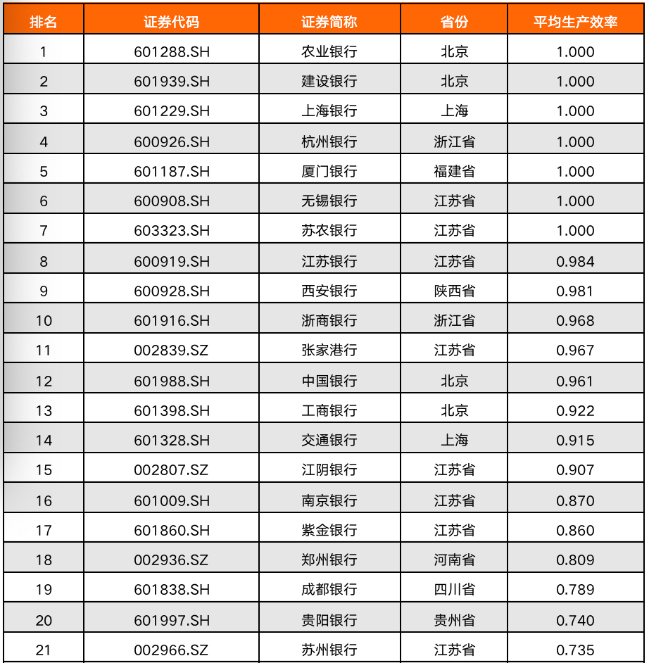 原標題: 上市商業(yè)銀行生產(chǎn)效率:農(nóng)行、建行等排名第一