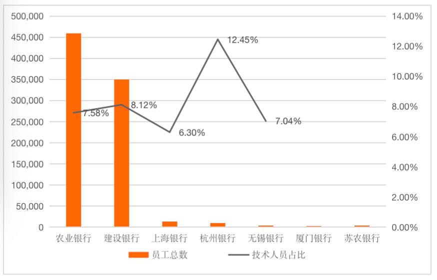 圖1:銀行員工總數(shù)及技術(shù)人員占比