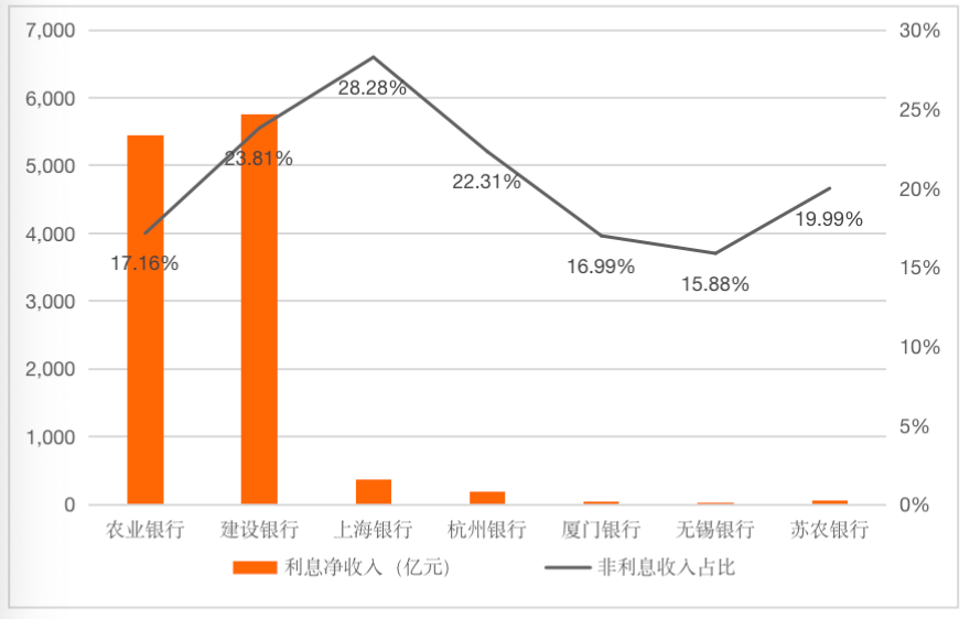 (五)建設(shè)銀行利息凈收入最高,上海銀行非利息收入占比最高