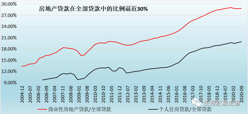 2、房地產(chǎn)貸款占比持續(xù)攀升,表明房地產(chǎn)貸款增速遠(yuǎn)高于一般貸款增速