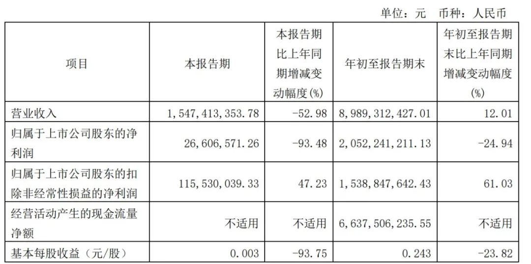 2021年第三季度,新湖中寶的營收為15.47億元,同比下滑52.98%,歸屬于上市公司股東的凈利潤下降更厲害,達到93.48%,為2660.7萬元,扣非后的凈利潤稍微好一些,上升了47.23%,為1.16億元。