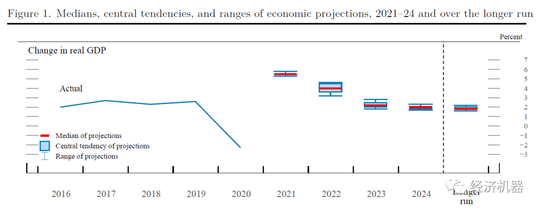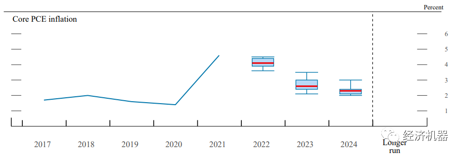 會(huì)議預(yù)測(cè)利率中樞抬升。會(huì)議預(yù)計(jì)2022年利率到1.9%(去年預(yù)測(cè)為0.9%),2023年年底利率將達(dá)到2.8%(去年為1.6%),2024年年底保持在2.8%(去年為2.1%),長(zhǎng)期利率預(yù)期中值為2.4%(去年為2.5%)。整體利率中樞較12月有明顯提升。