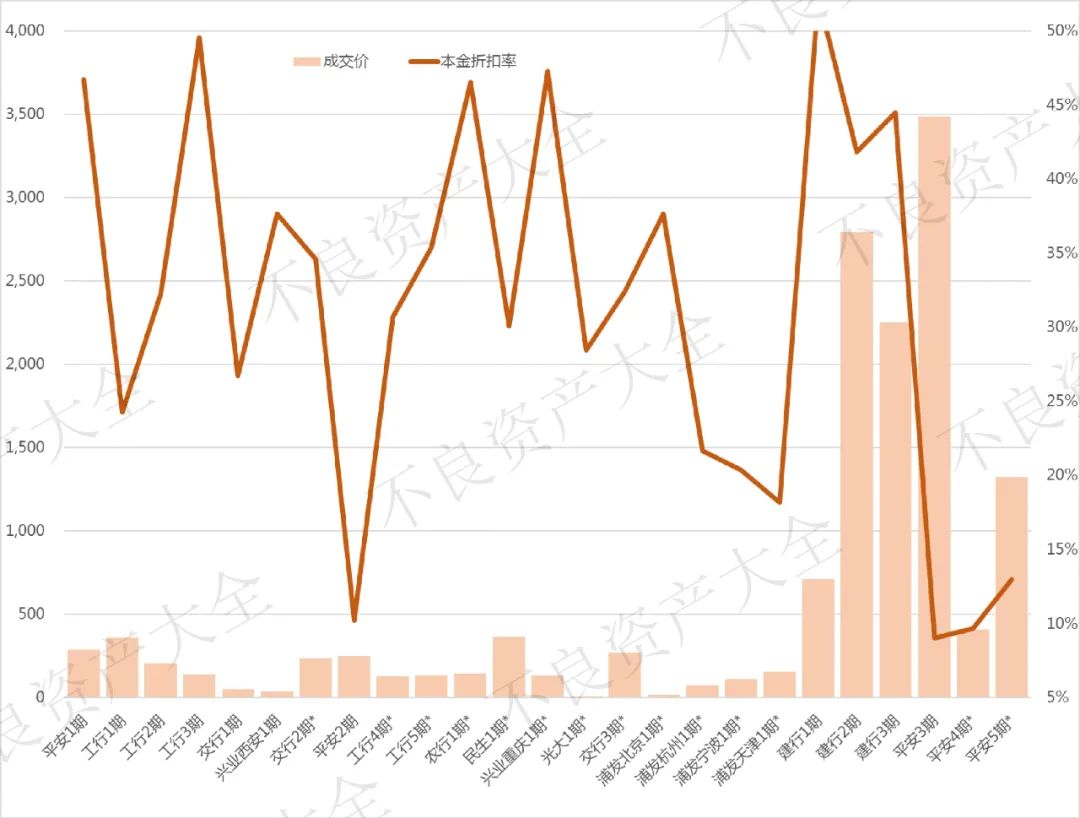 平安銀行的3期則延續了平安銀行薄利多銷的老傳統:高賬齡、高總額、低價格。其成交價格預估都在一折左右。