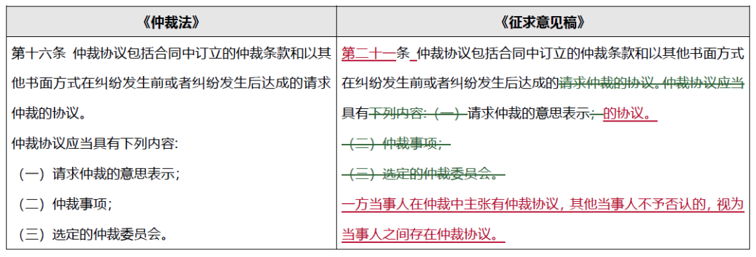 雖然最高院早已確立只要能夠推定出唯一、確定的仲裁機(jī)構(gòu), 即便仲裁條款中寫錯(cuò)仲裁機(jī)構(gòu)名稱仍然有效的裁判規(guī)則, 但《征求意見稿》顯然不滿足于此, 干脆直接“刪除”了“選定的仲裁委員會(huì)”, 即仲裁條款以后只需要有“仲裁的意思表示”, 甚至可以不約定“仲裁機(jī)構(gòu)”。