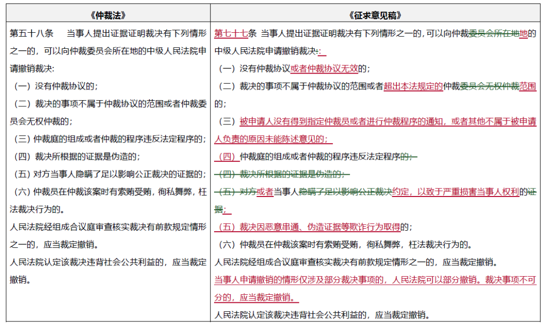 對(duì)比《最高人民法院關(guān)于適用<中華人民共和國(guó)仲裁法>若干問(wèn)題的解釋》(“《仲裁司法解釋》”)和《征求意見稿》就可以發(fā)現(xiàn), 《征求意見稿》對(duì)現(xiàn)行制度的修改包括: