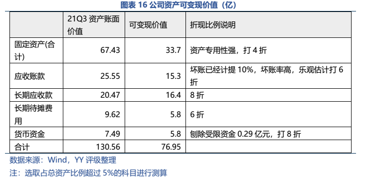樂觀來看,公司下修轉股價并成功促轉股,債券償付壓力自動清零;悲觀來看,按照正常比例計算資產價值,資產基本可以覆蓋公司有息債務,不至于陷入資不抵債的窘境。