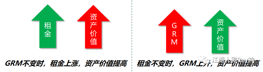 GRM的計算會比較簡單,只要參考市場上其他項目的價值和相對容易獲得的租金報價,就可以計算得出。并且,由于市場因素的對租金和價值產生的影響可以說是相同的,所以GRM可以說也是一個客觀的參考指標。通過測算所在地區同類物業的GRM,我們可以快速對擬投資的項目進行估值,即:資產價值(V) = 潛在租金收入(PRI) X 毛租金乘數(GRM)。