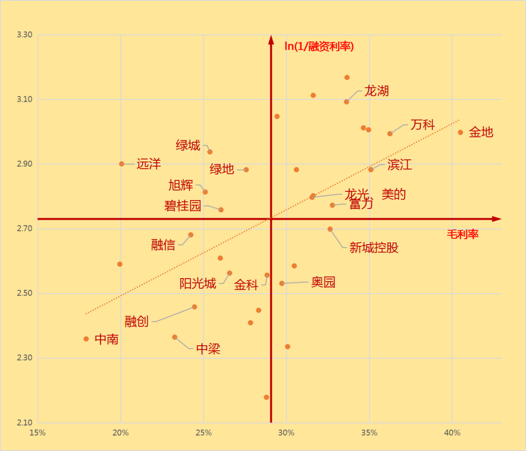 如果沒有去年王振華事件,以新城控股現在的融資利率-毛利率水平應該進入第一象限。