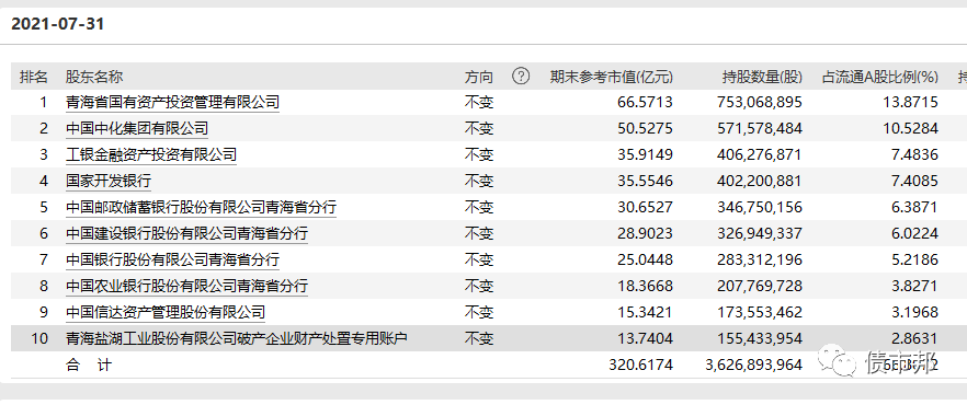 從最新披露的鹽湖股份的股東來看,確實(shí)除了工銀投資外,不見其他債轉(zhuǎn)股公司身影,某大行債轉(zhuǎn)股公司在2017年宣傳的200億元鹽湖股份債轉(zhuǎn)股簽約,現(xiàn)在看原來是空頭支票。鹽湖股份股東名單里的XX銀行XX分行,都是被迫轉(zhuǎn)股的銀行債權(quán)。