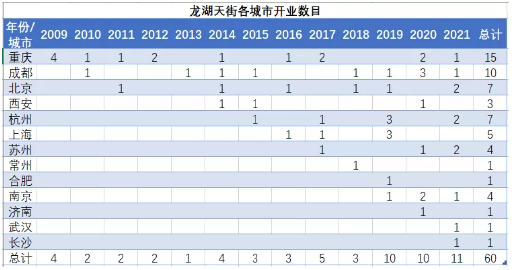 而截至2021年底,開業天街數量達到60個,其中21年開業11個,22年以后儲備開業18個。