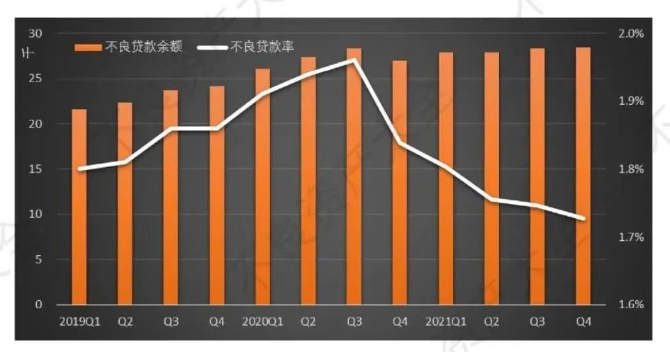 2019年-2021年我國商業銀行季度不良貸款余額及不良貸款率二、個人不良貸款余額