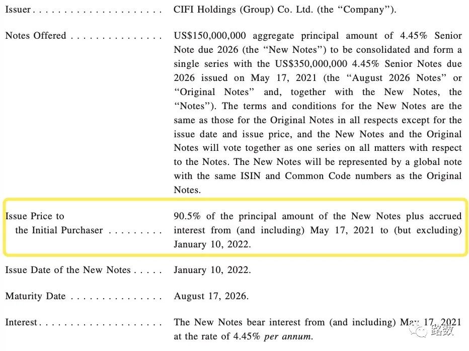 旭輝增發的那筆看上去票息最低,只有4.45%,金額共1.5億美元。不過這一筆其實是按照90.5%折價發行。▼