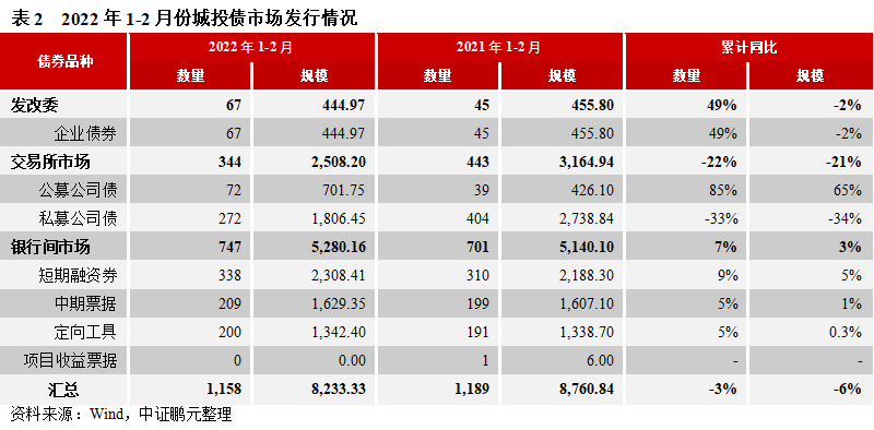 1. 1-2月份城投債發行規模同比小幅回落