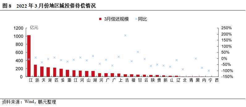 7. 3月份全國城投債待償規模同比下降,四川、浙江、河南等地城投債待償規模同比仍增長
