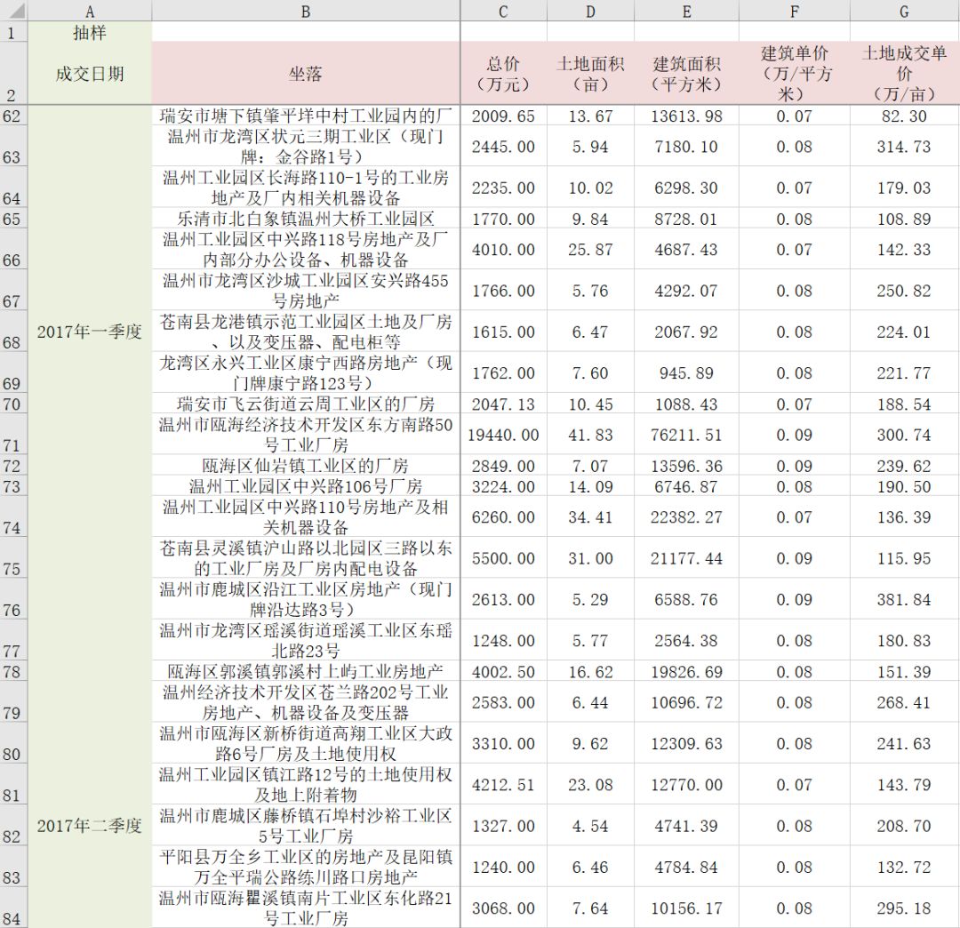 表3   部分溫州成交工業(yè)地價抽樣(數(shù)據(jù)來源淘寶司法拍賣,由后稷投資評估部匯總整理)