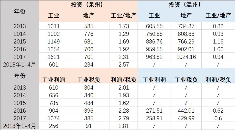 第三,如表5,2017年當溫州的利潤/稅負比僅僅只有0.6時,泉州已經(jīng)高達2.79,高了將近5倍。泉州是一個不斷給工業(yè)減稅的良心城市,政府對工業(yè)大力扶持的決心確實造成了泉州工業(yè)的輝煌。但從另一個角度來看,雖然2017年規(guī)模以上工業(yè)產(chǎn)值中泉州1.36萬億,溫州4946億;泉州有將近2000多家銷售額超億元的企業(yè),但你找不到一家巨無霸級別企業(yè)。實際上,泉州近年來不少中小制造業(yè)企業(yè)倒下,大企業(yè)總部外遷,現(xiàn)代服務業(yè)尚未形成氣候,單一的傳統(tǒng)制造業(yè),企業(yè)經(jīng)營的現(xiàn)實情況并沒有數(shù)據(jù)看起來那么靚麗。