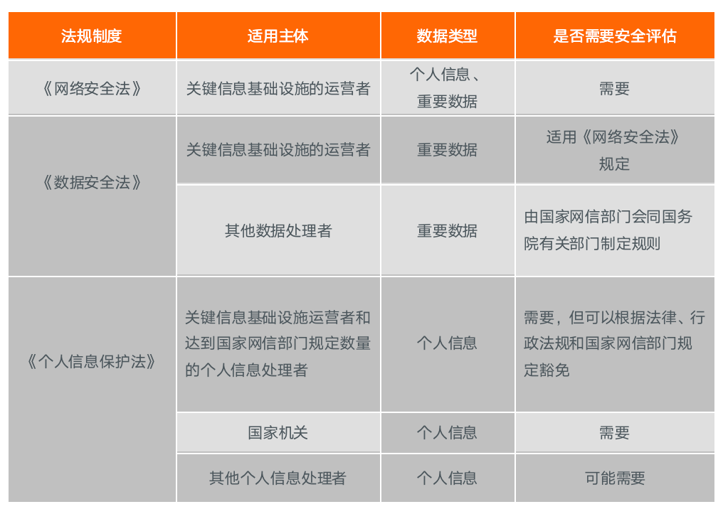 表:重要數(shù)據(jù)和個人信息的出境監(jiān)管制度