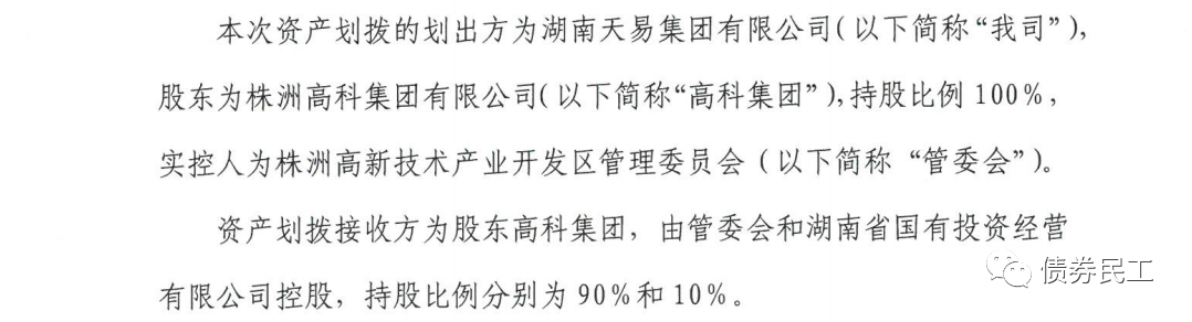 10、根據湖南天易集團有限公司(主體信用等級AA+)的公告,擬劃撥由其100%持股的株洲高科汽車園投資發展有限公司,接收方為公司控股股東株洲高科集團有限公司。株洲高科集團有限公司(主體信用等級AA+),存量債券金額為199.62億元。