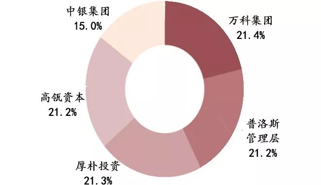 2017年7月,以萬科為首的中國財團(tuán)以116億美元(約790億元人民幣)正式收購普洛斯,造就了亞洲歷史上最大的私募股權(quán)并購案。交易完成后普洛斯將于新加坡交易所退市。收購前,持股比例GIC為36.57%、高瓴資本為8.14%、萊德集團(tuán)為6.99%、美銀美林集團(tuán)為5.31%;收購?fù)瓿珊螅止杀壤f科集團(tuán)為21.4%、厚樸投資為21.3%、高瓴資本為21.2%、中銀集團(tuán)投資有限公司為15%、普洛斯管理層為21.2%。