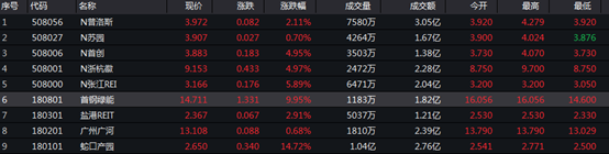 9只首批上市的公募REITs,全部收漲,成交量也較活躍,其中蛇口產園日內成交量超1億。具體交易情況如下圖:
